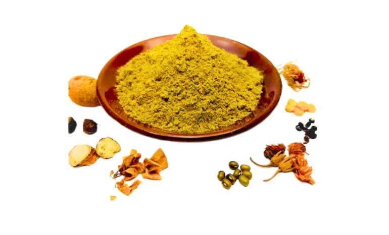 Moongdhal, White turmeric, Sandalwood, Multhanimetti, Orange peel, Rose petals, Hibiscus petals, Aloe vera, Neem.